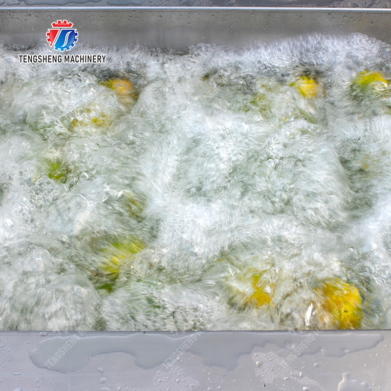 Deze machine is een milieuvriendelijk verwerkingsmateriaal met drie reinigingsmethodes: luchtbellen, het doorgeven het surfen en hoge druk het bespuiten; het ozon heeft de functies van sterilisatie, ontgifting, en degradatie van overblijvende pesticiden. Het kan de vruchten in alle richtingen met opmerkelijke gevolgen schoonmaken.